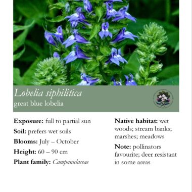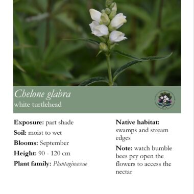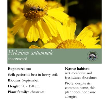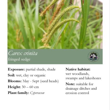 The native perennials sold by the Friends have been lovingly propagated by volunteers from seed collected in the wild and from the botanical gardens. Proceeds from the sale of these plants go back to the non-profit society to support plant conservation and education projects at the Harriet Irving Botanical Gardens.