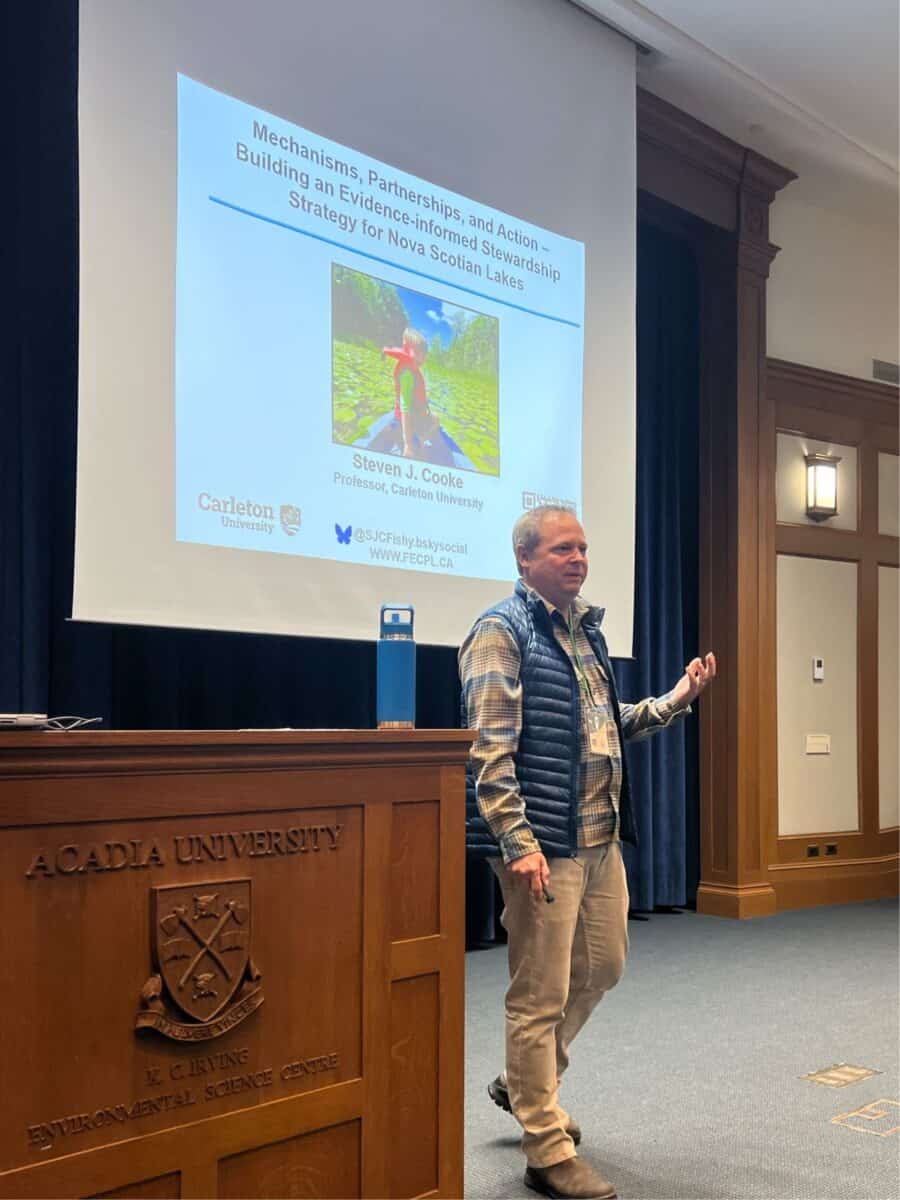 Plenary speakers Dr. Steven Cooke of Carleton University and Dr. Andrea Kirkwood of Ontario Tech University brought insights from Ontario’s intensively developed “cottage country”. The two discussed how local-scale research and grassroots initiatives can drive long-term change. Dr. Cooke is a Canada Research Professor and founding Director of the Canadian Centre for Evidence-Based Conservation. Dr. Kirkwood is a Professor in the Biological Science and Applied Bioscience programs at Ontario Tech University and has held a Research Excellence Chair in Urban Water since 2023.