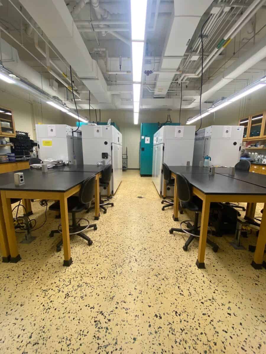 Additional spaces for controlling and simulating climate conditions are our eight Environmental Growth Chambers in the newly renovated common laboratory.